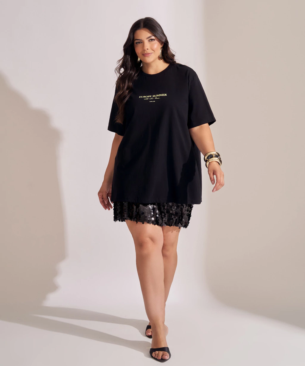 A Saia Paetê Collab é feita 100% em poliéster, garantindo brilho e durabilidade. Com elástico na cintura que abraça o corpo com conforto, possui caimento reto e barra a fio para um acabamento sofisticado. Seu forro interno oferece maior conforto e evita transparências, ideal para festas e eventos que pedem um toque de glamour.