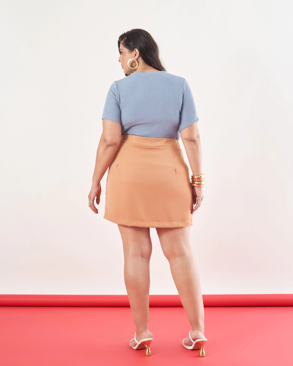 Saia Sarah: elegância e conforto para o seu dia a dia! Confeccionada em 100% poliéster, essa saia em alfaiataria destaca-se pelo detalhe sofisticado de recorte frontal, que valoriza a silhueta. Possui zíper lateral para facilitar o vestir e pregas nas costas que garantem liberdade de movimento. O forro em shorts oferece conforto extra, ideal para mulheres práticas e cheias de estilo. Invista em uma peça versátil que combina com diversas ocasiões com muito charme!