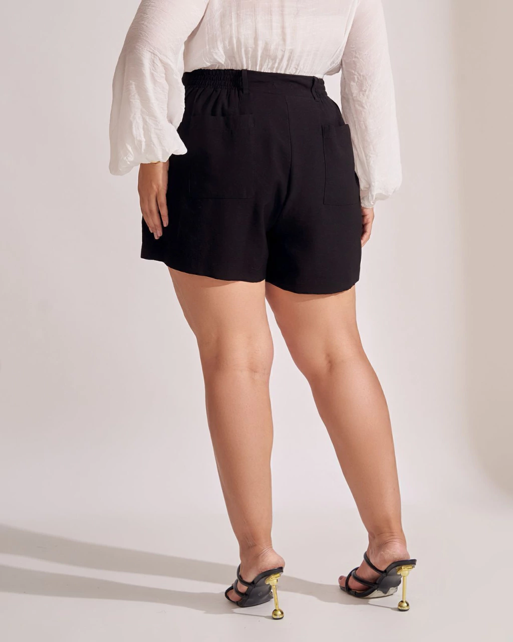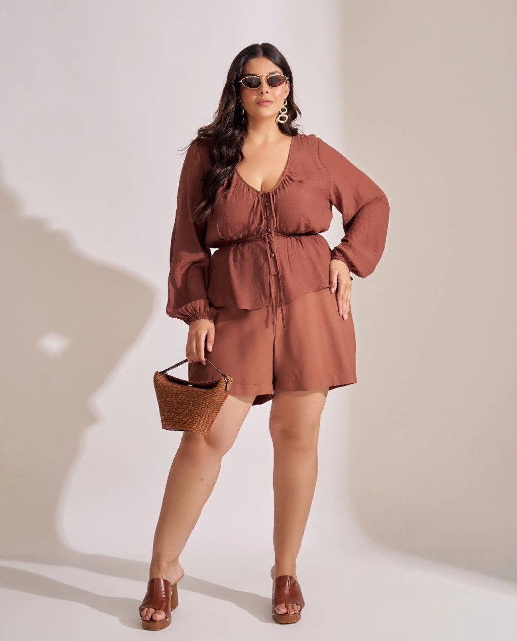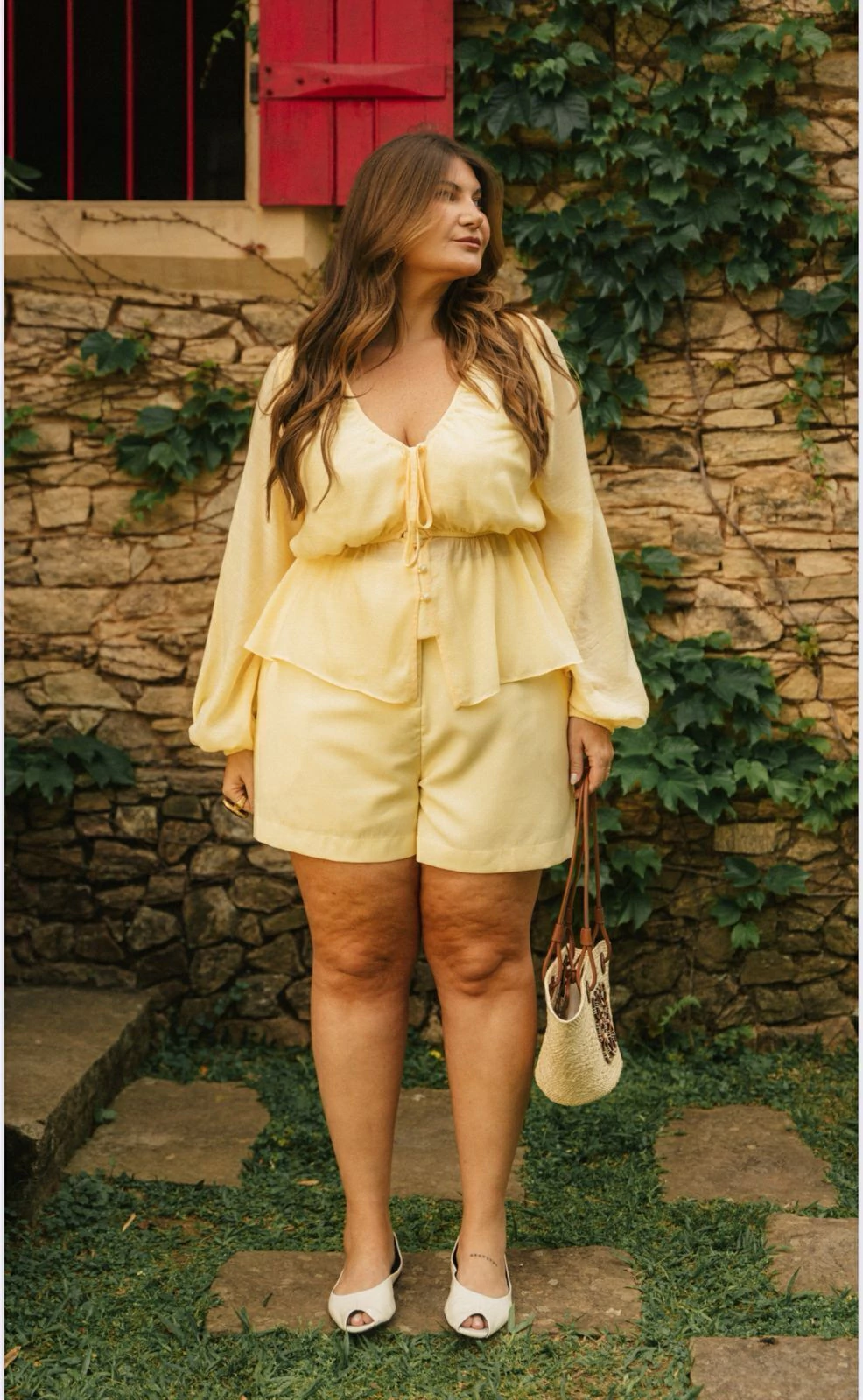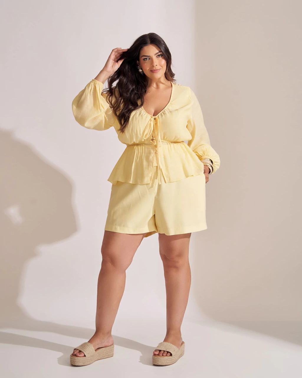 O Shorts Basic Collab é confeccionado em 90% viscose e 10% poliéster, garantindo conforto e leveza para o seu dia a dia. Apresenta cós liso na frente com botão tingido e elástico lateral na parte de trás, proporcionando ajuste perfeito. Conta com bolso invisível frontal e bolso traseiro, além de forro para maior comodidade. Disponível nos tamanhos 38 ao 54. Preço: R$ 269,99.